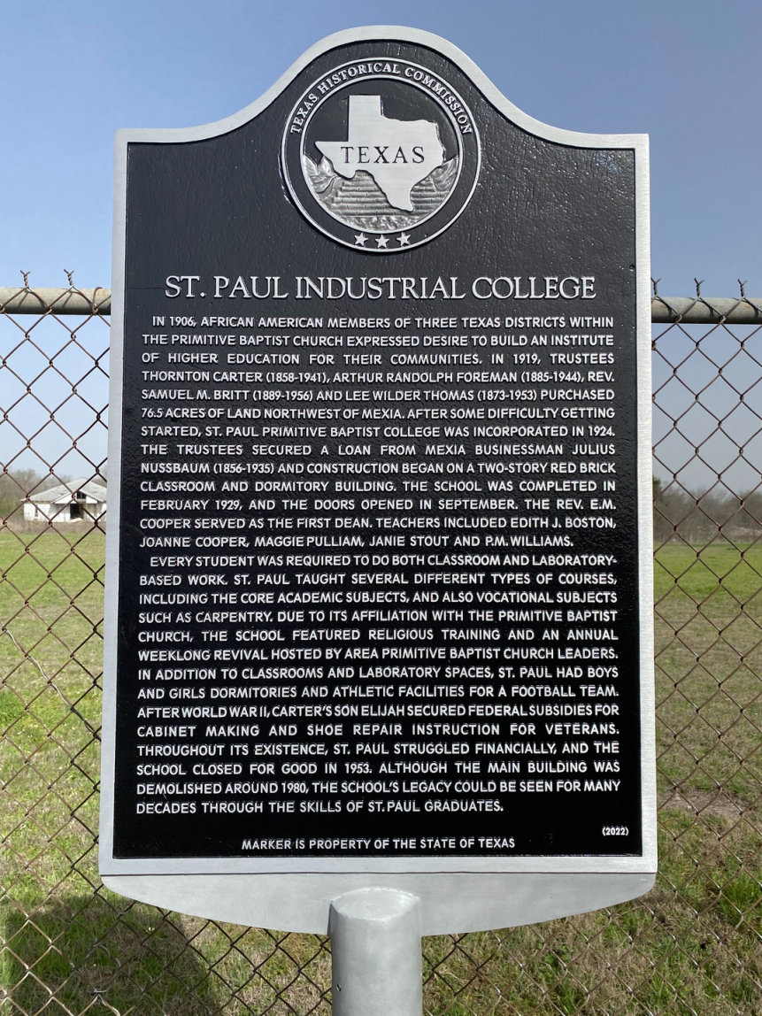 St Paul Industrial College was a small black college that existed in Mexia between 1929-1953.